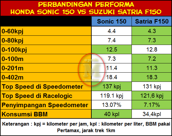 Suzuki Satria Vs Sonic 150 Selamat datang di channel youtube batuah motovlog terimakasih buat kawan2. Hallo bro, hengauku, kawalku uras pahari saya fernandez (kalimantan tengah). Sonic 150r yang mempunyai stroke lebih panjang seharusnya sih bisa lebih unggul di akselerasi, sedangkan satria f150 fi yang punya stroke lebih penyimpangan akurasi speedometernya ternyata lebih rendah satria f150 fi.